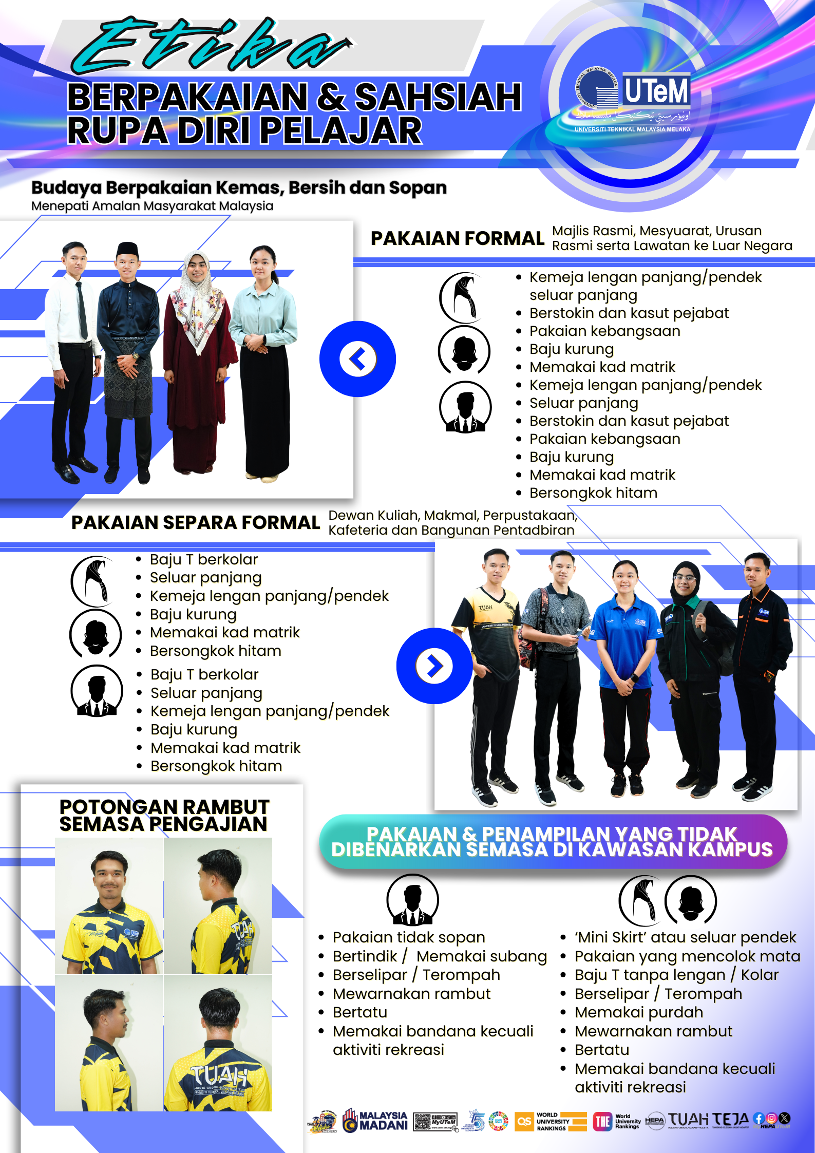 Menjaga keseimbangan antara studi, pertumbuhan pribadi dan waktu luang yang wajar adalah salah satu elemen kunci dalam sistem pengembangan mahasiswa seperti yang dipraktekkan di UTeM. Mengejar disiplin, pengetahuan dan pengalaman baru membantu membentuk seorang profesional yang matang dan tangguh yang terbuka terhadap peluang di berbagai bidang kehidupan.